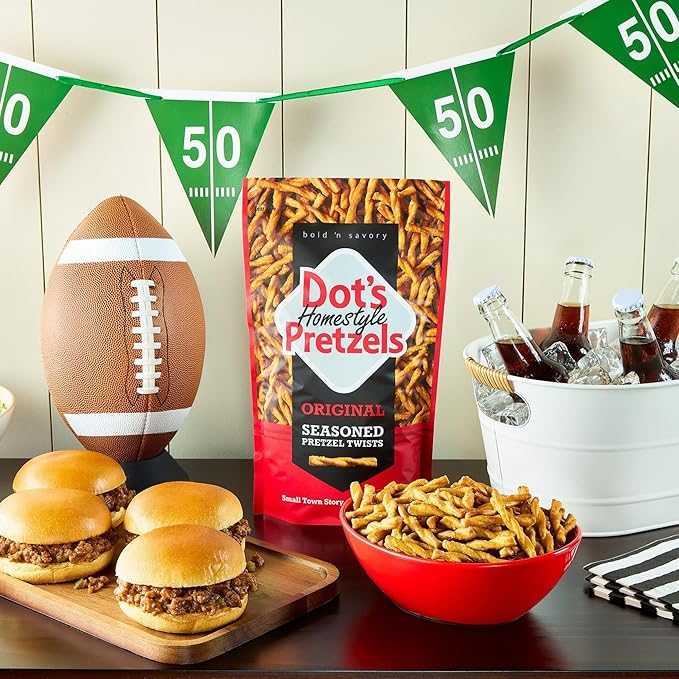 - Dot's Pretzels provide a satisfying crunch with a twist! Specially seasoned with a blend of bold spices, our pretzels are great for kids lunches, watching the big game, or just a snack for yourself