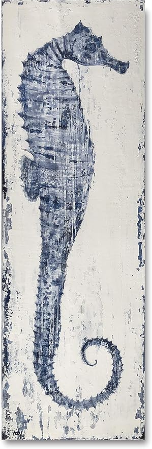 Yihui Arts Seahorse Wall Art Hand Painted Costal Paintings Blue Pictures Canvas Artwork for Living Room Bedroom Decoration