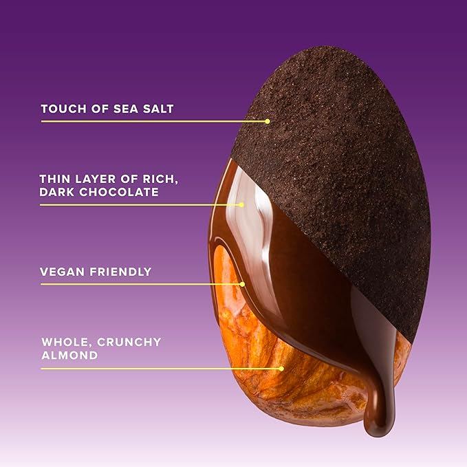 - INSANELY DELICIOUS + VEGAN-FRIENDLY: Whole roasted almonds SkinnyDipped in a thin layer of vegan-friendly, 73% artisan dark chocolate and sea salt with a kiss of maple sugar.