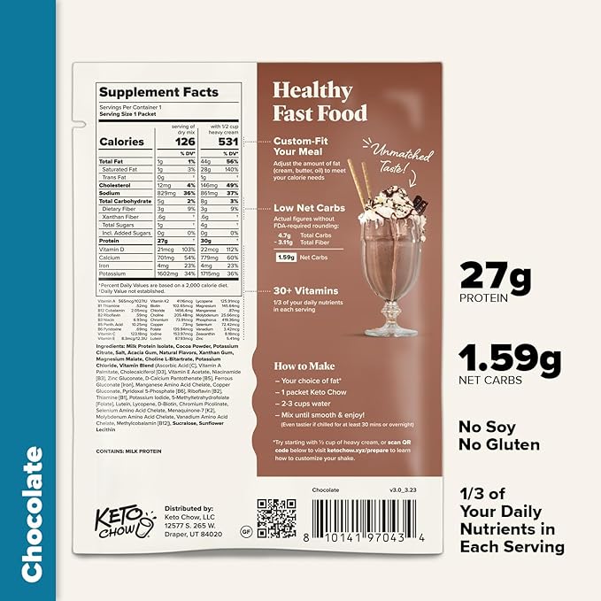 Keto Chow Variety Starter Bundle Replacement Shake Powder | Nutritionally Complete | Low Carb | Delicious Easy Meal Substitute | Protein Rich Keto Food You Choose The Fat | Single Meal Samples