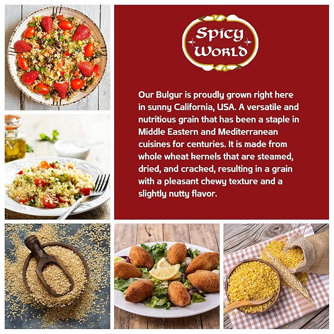 - ✅ QUICK & EASY COOKING:: Our premium Bulgur Cracked Wheat is finely cracked. Made from excellent USA grown bulgar wheat, it adds a nutty flavor & chewy texture to your dishes. Perfect for tabouleh and more!