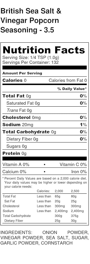 - 🌊 British Sea Salt & Vinegar Popcorn Seasoning: Experience the classic flavors of British seaside snacking with our Sea Salt & Vinegar Popcorn Seasoning. Made with premium British sea salt and tangy vinegar, this seasoning adds a zesty and refreshing twist to your popcorn that is sure to tantalize your taste buds.