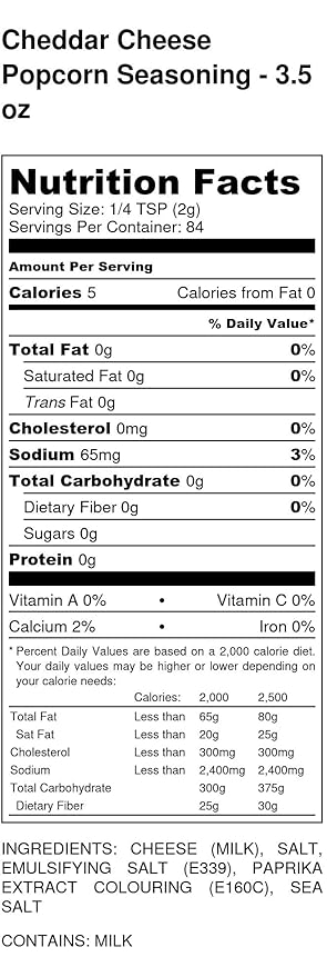 - 🧀 Cheddar Cheese Popcorn Seasoning: Say cheese! Our Cheddar Cheese Popcorn Seasoning is a cheesy delight that will satisfy your cravings for all things savory. Made with real cheddar cheese and savory spices, this seasoning adds a rich and creamy flavor to your popcorn that will have you reaching for more.