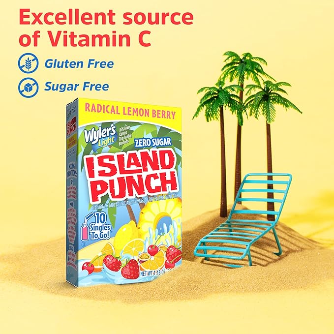 - ZERO SUGAR – Wyler’s Light Island Punch Singles To Go are caffeine free, gluten free, and sugar free drink mixes. Plus, they are an excellent source of vitamin C.