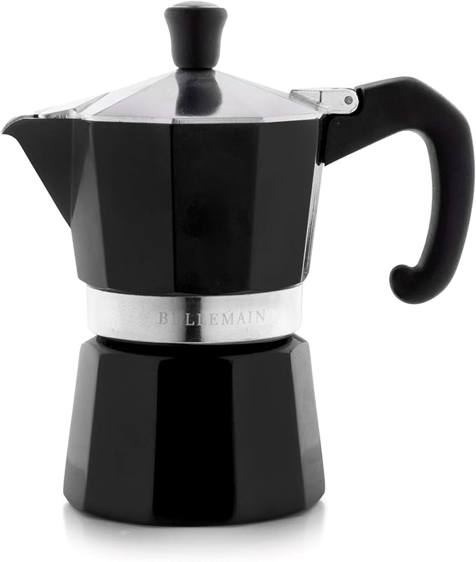 Bellemain Stovetop Espresso Maker | Italian Moka Pot Espresso Maker, Classic Aluminum Design Mocha Pot for Home Brewing & Camping | Easy to Use & Clean - 3-Cup, Black