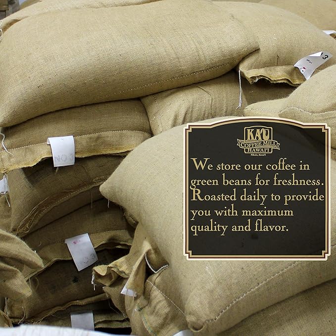 - A TASTE OF KA'U IN EVERY CUP: In our sunny nook of Hawaii's Big Island, we start each day by roasting small batches of our handpicked Hawaiian grown coffee beans. Keeping them green until the perfect roasting moment ensures your coffee is always brimming with freshness and flavor. It's our way of weaving a little Ka’u magic into your daily routine, from the first cup of the day to your afternoon pick-me-up.