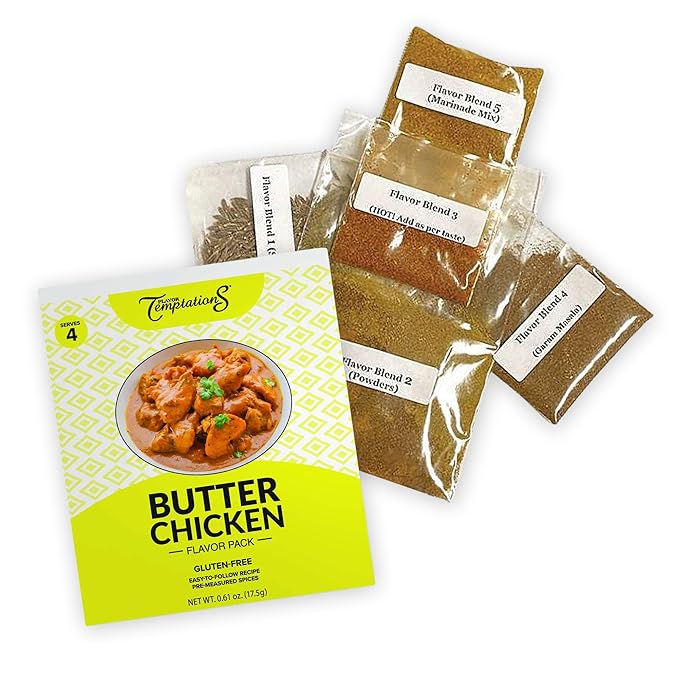 BUTTER CHICKEN MAKHANI INDIAN SPICEs Kit by Flavor Temptations | Home Cook Authentic Indian food with Beginner Seasoning Set | Gluten Free, Salt Free, All Natural, Organic spices (1 Spice Kit)