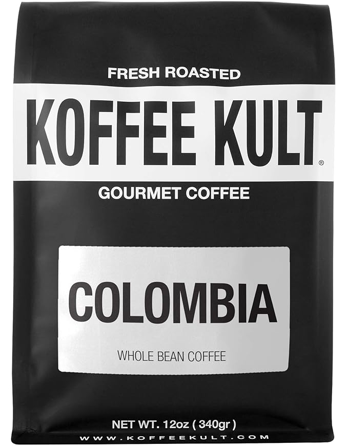 Koffee Kult Colombian Medium Roast Coffee Beans 100% Single Origin Colombia Arabica Whole Bean (Whole Bean, 12oz)
