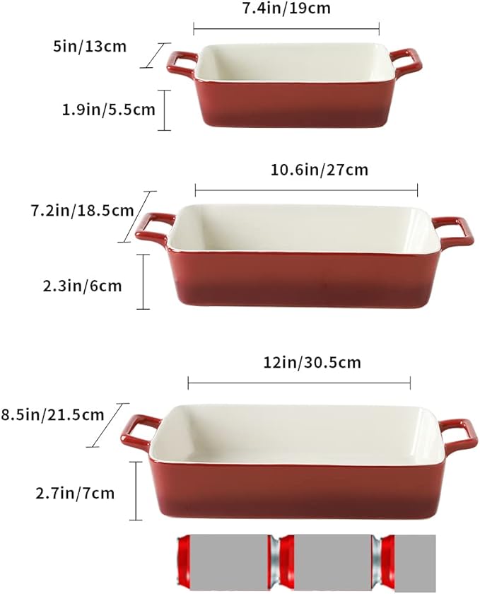 KOOV Bakeware Set, Ceramic Baking Dish, Rectangular Baking Pans Set, Casserole Dish for Cooking, Cake Dinner, Kitchen, Wrapping Upgrade, 12 x 8.5 Inches, 3-Piece (Gradient Red)