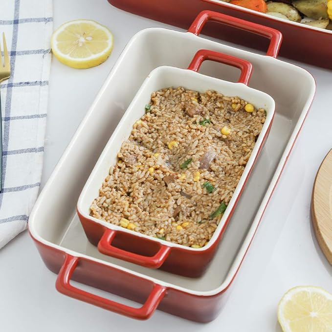 - LONG LASTING COLOR AND SCRATCH RESISTANT: This ceramic bakeware set are made of high quality and Eco-friendly glaze. Extremely hard glaze does not scratch and durable for everyday use, ideal in the kitchen for making delicious meals and desserts.