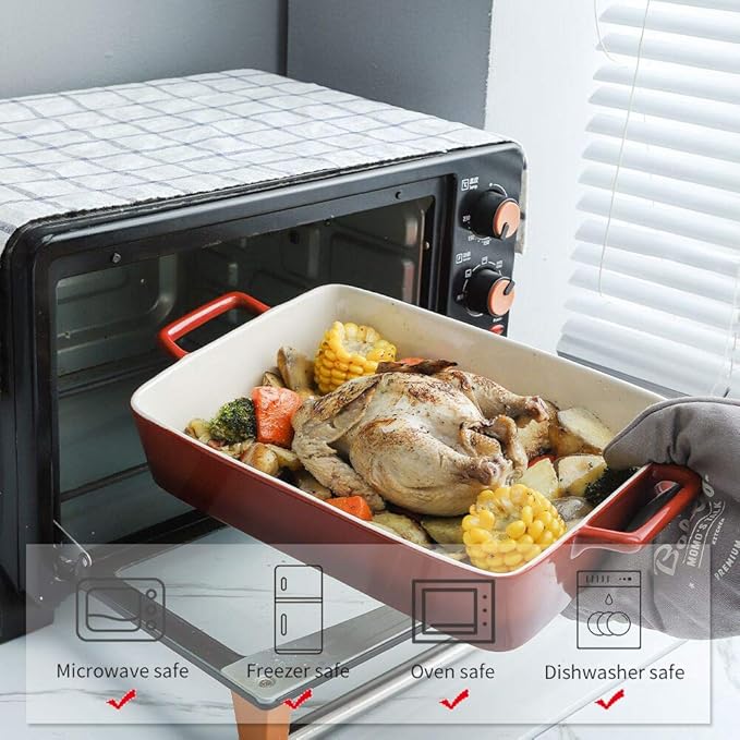- SAFETY UNDER HIGH TEMPERATURE: This baking pan set is made of durable, high temperature stoneware, oven safe to 500°F. It can be used in the oven, microwave, refrigerator and dishwasher. NOTE: No direct fire and induction cooker.