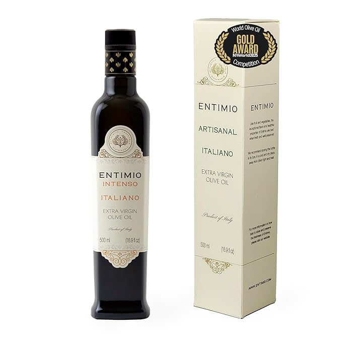 Entimio Intenso +900 mg/kg Polyphenol Rich Organic Extra Virgin Olive Oil, New 2024-2025 Early Harvest Italian Olive Oil from Puglia, Italy, 2025 Gold Winner, Cold Extracted, Lab Tested - 16.9 fl oz