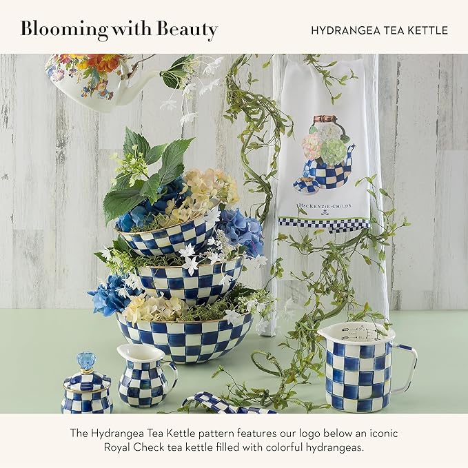 - ELEGANT WASHROOM DECOR: Our Hydrangea Tea Kettle dish and kitchen towel features our logo below an iconic Royal Check tea kettle filled with colorful hydrangeas. This cotton towel will make a cozy addition to any kitchen decor.