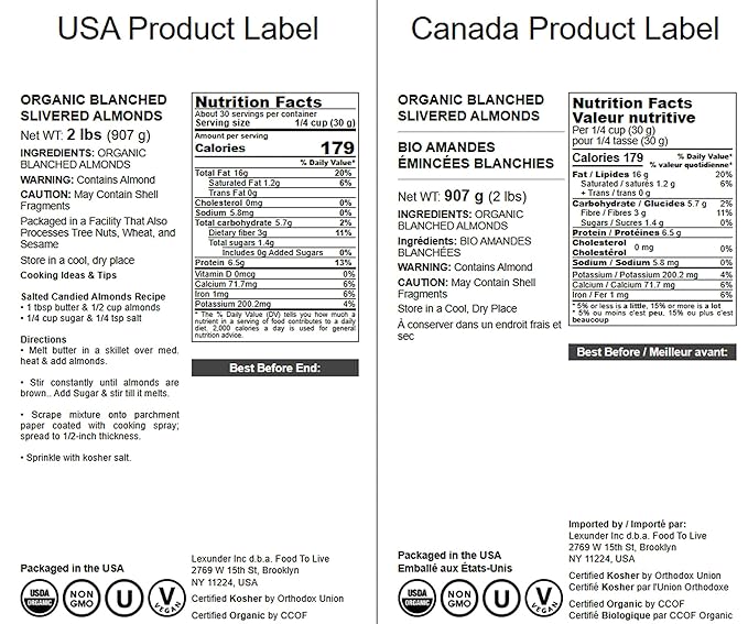 Food to Live Organic Blanched Slivered Almonds, 2 Pounds – Non-GMO, Raw, Unpasteurized, Unsalted, Vegan, Keto, Paleo, Kosher, High Protein, Dietary Fiber. Great for Cooking, Baking, Salads & Cereals