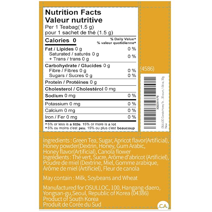OSULLOC Canola & Apricot Tea (Aromatic Canola flower & Apricot), Premium Blended Tea from Jeju, Tea Bag Series 20 count