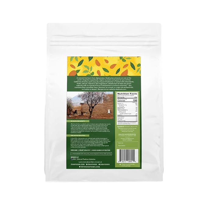- Quality: We started Ziba for one simple reason – to recognize the incredible quality of Afghan dried fruit and nuts. Our almonds are crunchy even when raw, not mealy with a deep robust flavor that is rarely found anymore in almonds grown elsewhere.