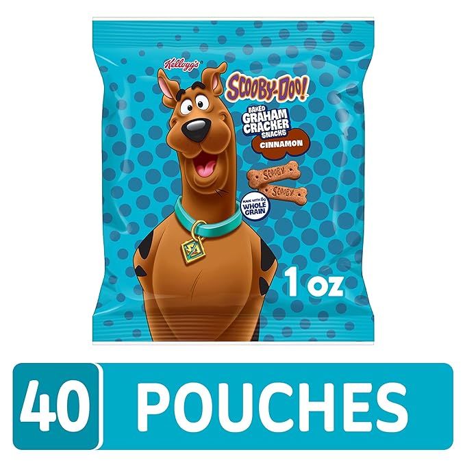 - Includes one, 2.5lb case containing 40, 1oz Kellogg’s SCOOBY-DOO! baked graham cracker snacks pouches; Packaged for freshness and great taste