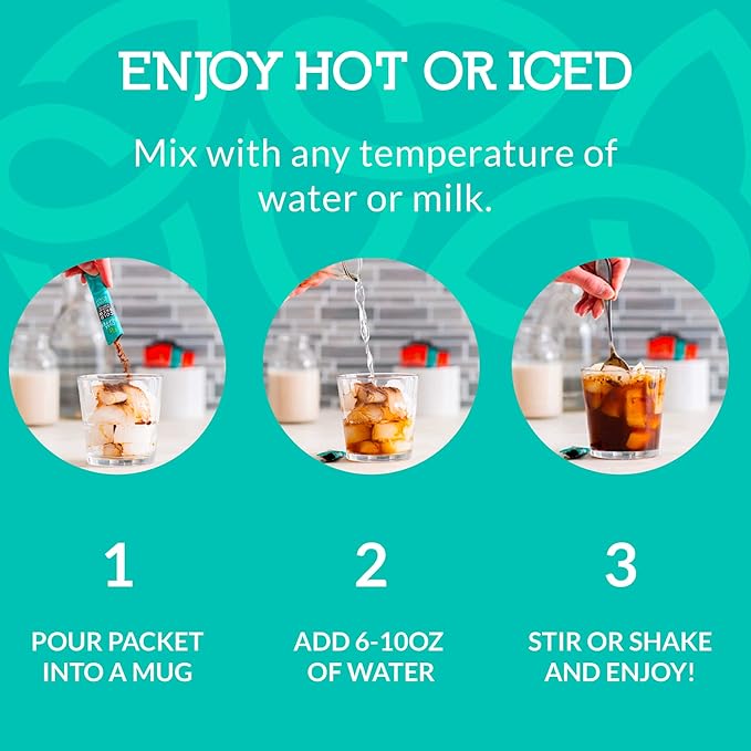 Cusa Tea & Coffee | Premium Instant Light Roast | Rainforest Alliance Certified Arabica Beans | Hot or Cold Brew Drink Mix Packets (30 Single Servings)