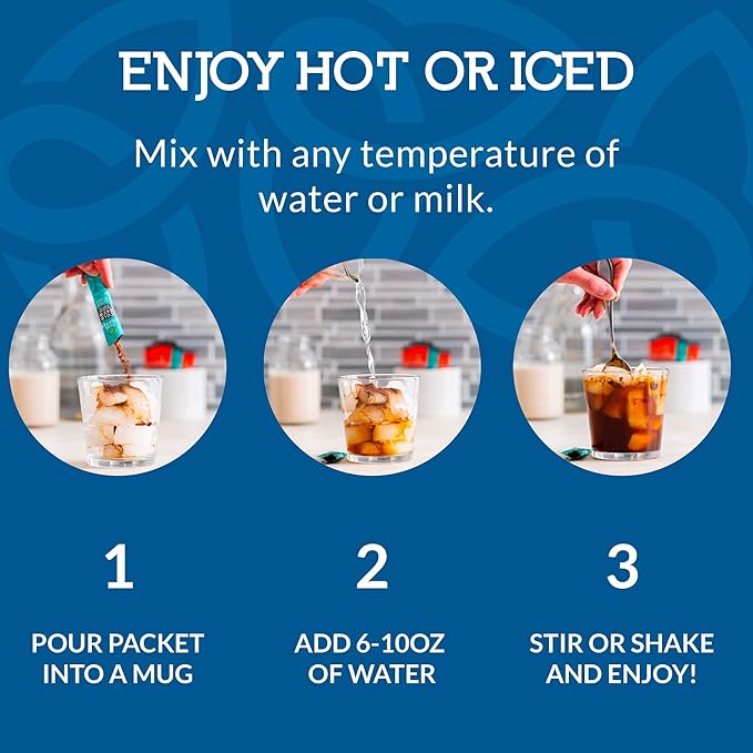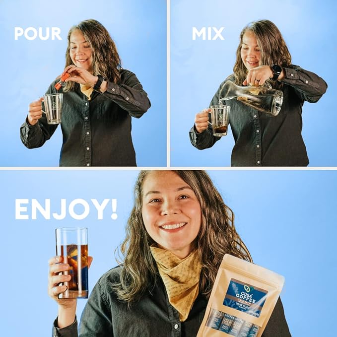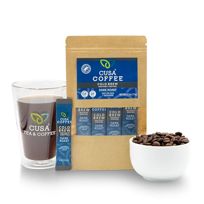 Cusa Tea & Coffee | Premium Instant Dark Roast | Rainforest Alliance Certified Arabica Beans | Hot or Cold Brew Drink Mix Packets (7 Single Servings)