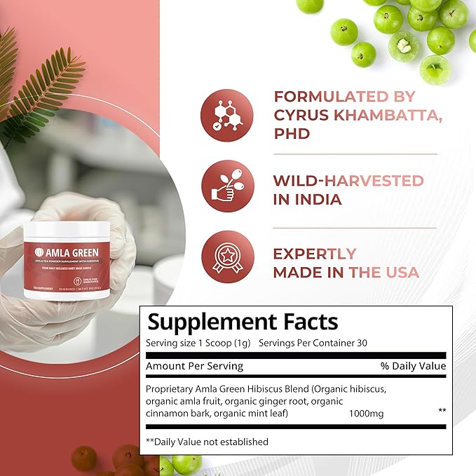 - DAILY SUPERFOOD TEA: With over 10,000 daily active users, Amla Green is the go-to source for antioxidative benefits mixed into smoothies, breakfast bowls, or as a hot or cold morning or evening tea. One scoop per day provides a natural method for supporting your most critical areas of health, with a smoother taste and better flavor than traditional amla supplements.