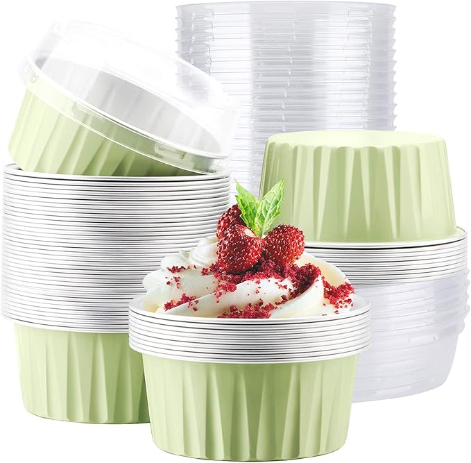 EUSOAR Cupcake Liners, 50pcs 5oz 125ml Cupcake Liners, Aluminum Foil Muffin Liners Cups with Lids, Cupcake Holder, Disposable Aluminum Foil Cupcake Baking Cups Holders Cases Boxes Pans with Lids