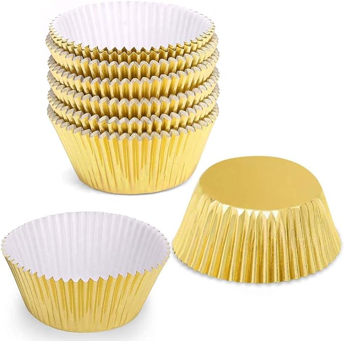 - 100-count standard gold foil muffin liners per pack, 2 in. bottom diameter and 3 x 1 1/4 inch (top x height) match standard cupcake or muffin pans