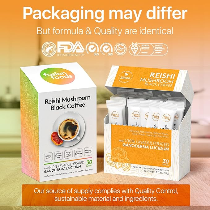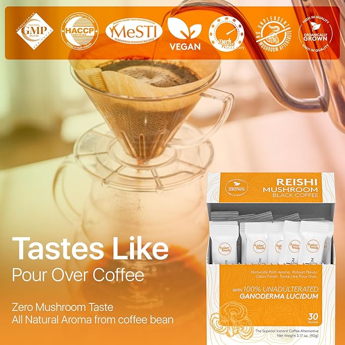 Reishi Mushroom Black Coffee by fusion foods™ | All Natural Unadulterated Reishi Mushroom Ganoderma | Robust Aroma & Taste - 30 counts