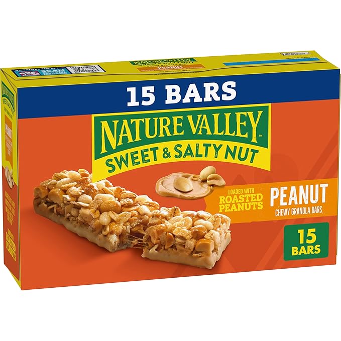 - CONTAINS: One big cardboard box of Nature Valley Granola Bars, Sweet and Salty Nut, Peanut, 15 Bars, 18 oz; Perfect for instant snacking