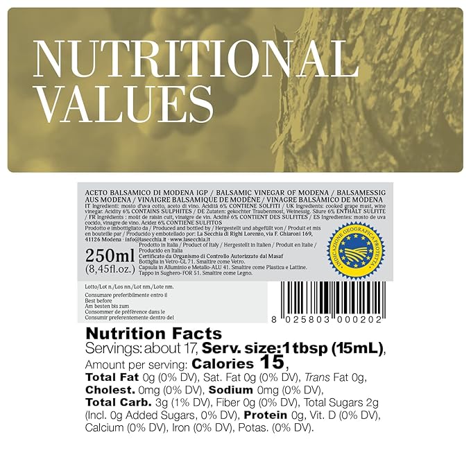 - 🧪 NO CHEMICALS: IGP Balsamic Vinegar of Modena obtained WITHOUT: Caramel, Dyes, Gum Arabica, Artificial Flavoring Substances, Added Sulphites.