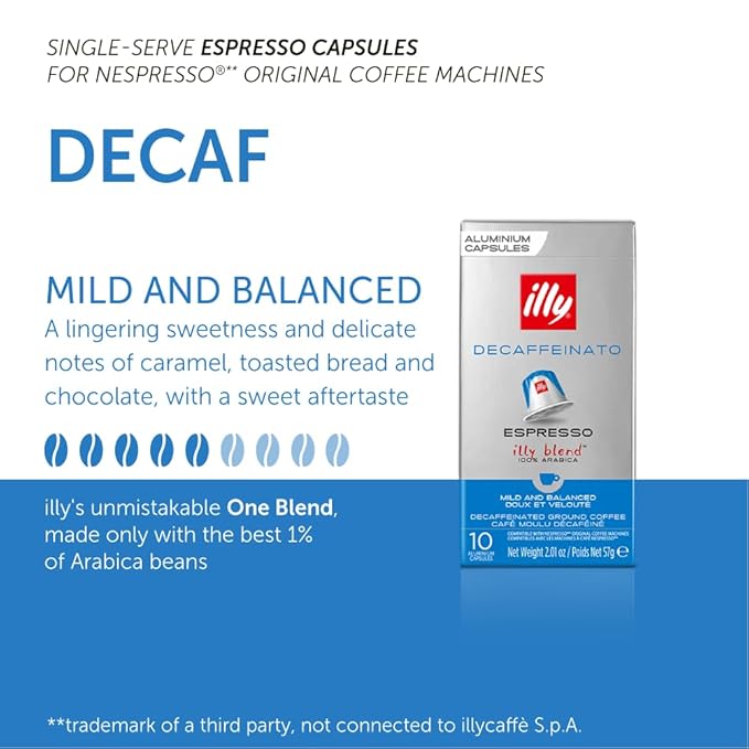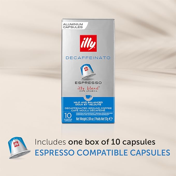 Illy Espresso Compatible Capsules - Single-Serve Coffee Capsules & Pods - Classico Decaf Roast - Notes Of Caramel, Toasted Bread & Chocolate Pods - For Nespresso Coffee Machines – 10 Count