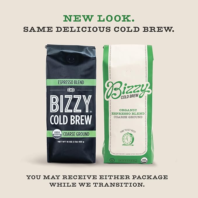 Bizzy Organic Cold Brew Coffee | Espresso Blend | Coarse Ground Coffee | Medium-Dark Roast | Micro Sifted | Specialty Grade | 100% Arabica | 1 LB