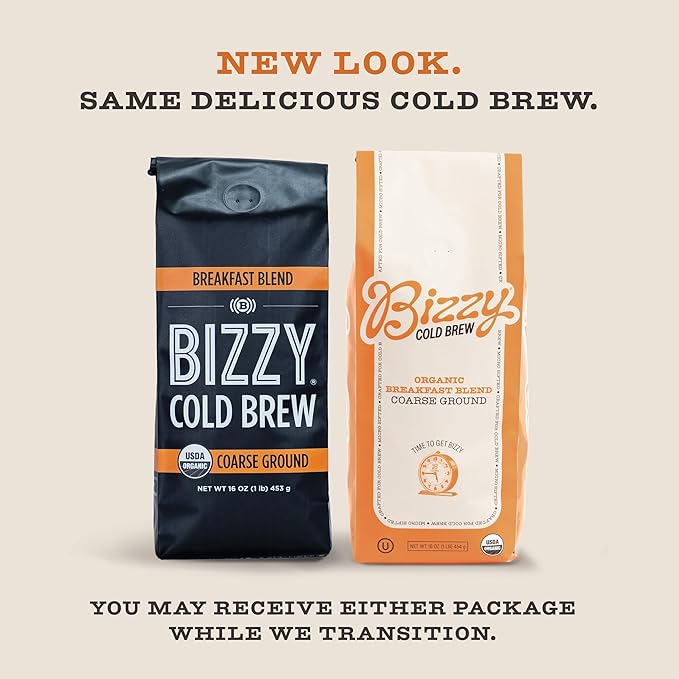 Bizzy Organic Cold Brew Coffee | Breakfast Blend | Coarse Ground Coffee | Medium-Light Roast | Micro Sifted | Specialty Grade | 100% Arabica | 1 LB