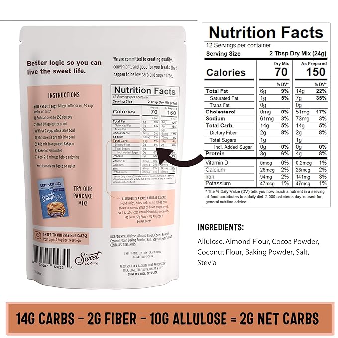 - INDULGENT KETO DESSERTS: Enjoy Sweet Logic Baking Mixes with only 1-2g of net carbs per serving. Made with natural sweeteners like allulose and stevia, they provide a guilt-free way to satisfy your sweet tooth on a keto diet.