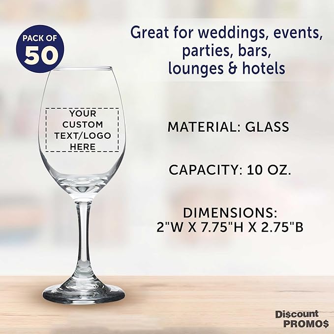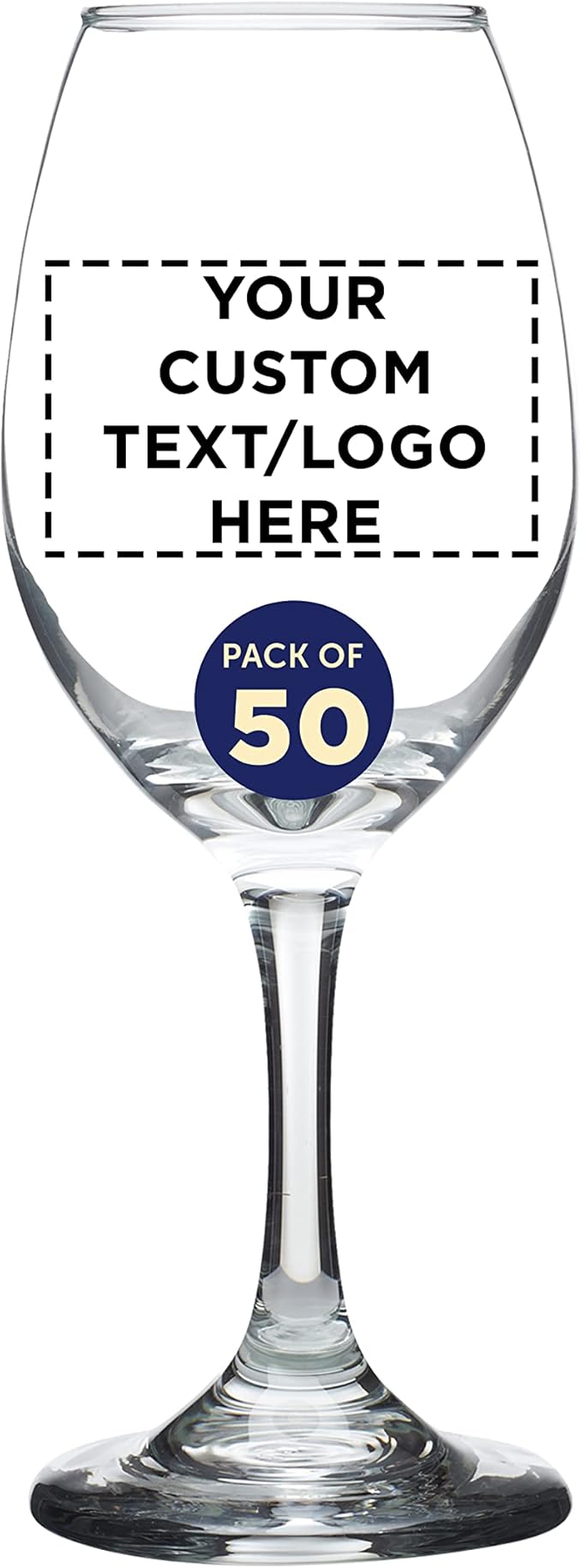 Custom Rioja Wine Glasses with Stem 10 oz. Set of 50, Personalized Bulk Pack - Color Bottom, Perfect for Wedding, Party Favors, Birthday, Bridal Shower Gifts - Clear