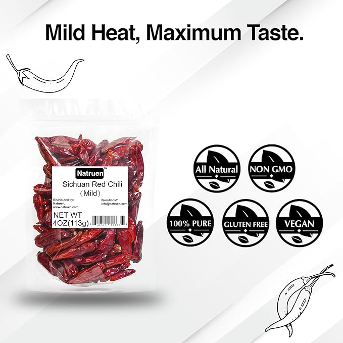 - Sichuan chile has mild heat with sweet savory flavor great for Mexican, Chinese, and Thai cuisine.