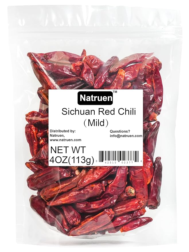 Natruen Whole Dry Szechuan Chinese Red Chili Pods 4 Oz, Mild, Facing Heaven Chili, Spicy Sichuan Dried Red Hot Chilies for Chili Oil, Paste, and Sauce