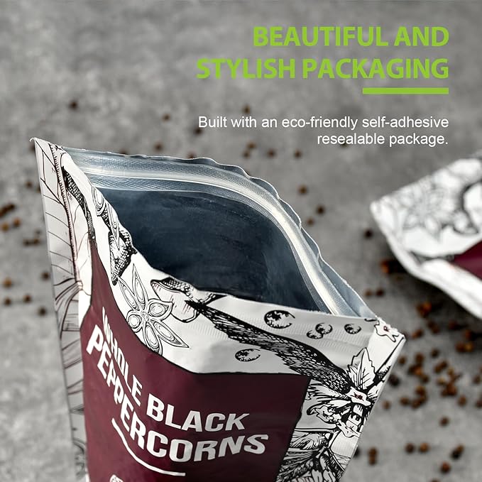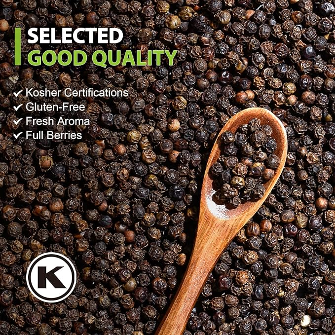 - DISTINCTIVE FLAVOR: Black peppercorn enhances the flavor of meat, gives a spicy bite to soups and stews and brightens up vegetables with its earthy punch.