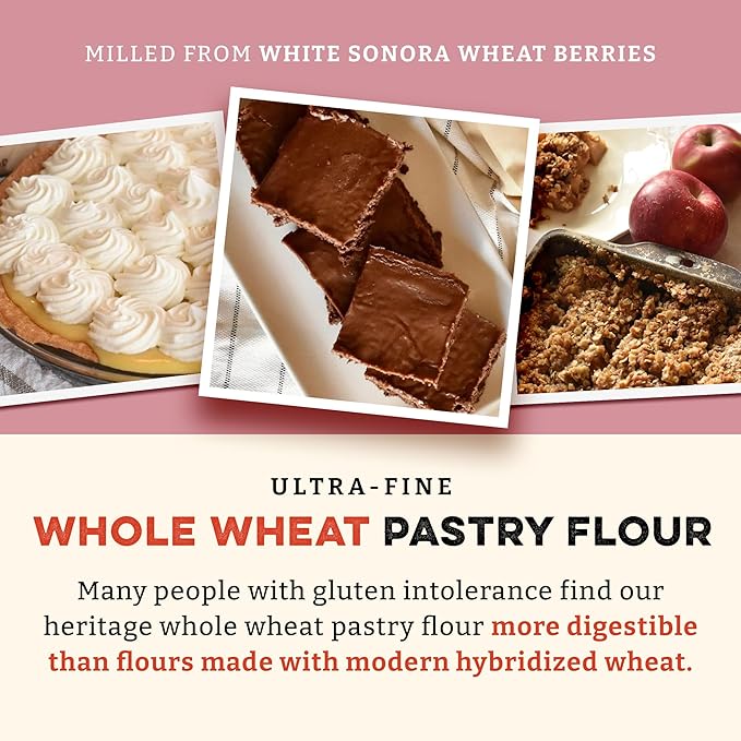 - PASTRY FLOUR - Super-fine in texture, it works best for making non-yeasted baked goods like whole wheat muffins, cookies, pancakes, brownies, tortillas, biscuits, pies and more