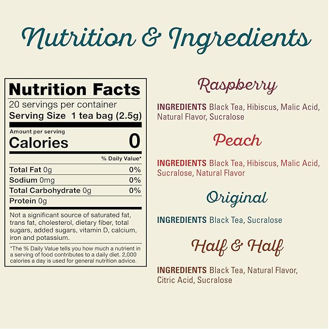 - SINGLE SERVE COLD BREW TEA BAGS: Southern Breeze black tea promises a bold taste without the hassle of boiling water. Each cold brew tea box contains sweet tea with 20 individually wrapped tea bags per box, pack of 4 with different flavors of Original, Raspberry, Peach, and Half & Half