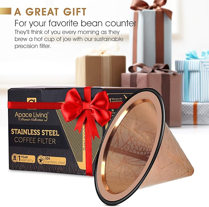 - ☕FITS OVER THE RIM OF YOUR COFFEE FILTER HOLDER: The wide tops of our filters fit over the rim of popular pour over coffee makers. This means the cone filter is easy to remove for cleaning.