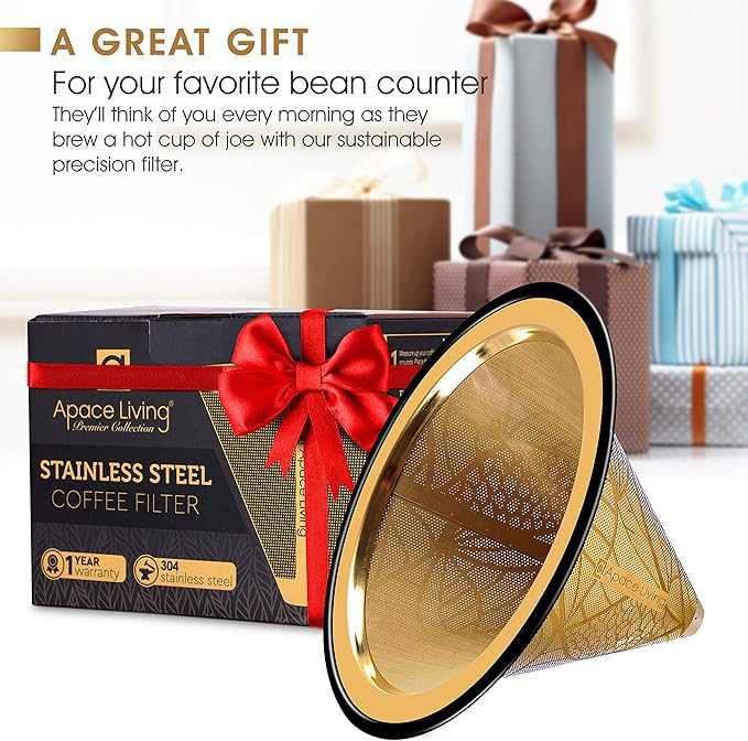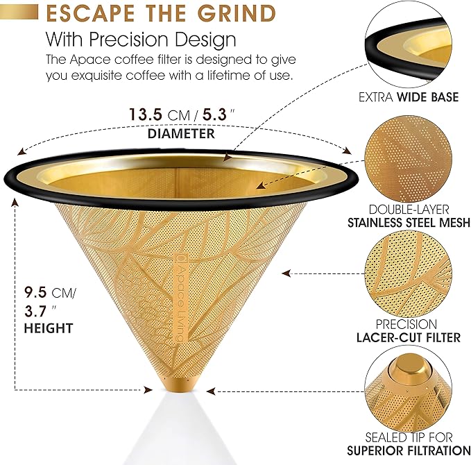 - ☕FITS OVER THE RIM OF YOUR COFFEE FILTER HOLDER: The wide tops of our filters fit over the rim of popular pour over coffee makers. This means the cone filter is easy to remove for cleaning.
