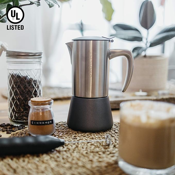 - ⭐IMPECCABLE STAINLESS STEEL CRAFTSMANSHIP: Embrace the weighty feel of quality stainless steel. Complemented by a premium silicone gasket, the Milano Steel Moka pot is the paragon of stovetop espresso makers. Create moments with your favorite coffee and glass espresso cups.