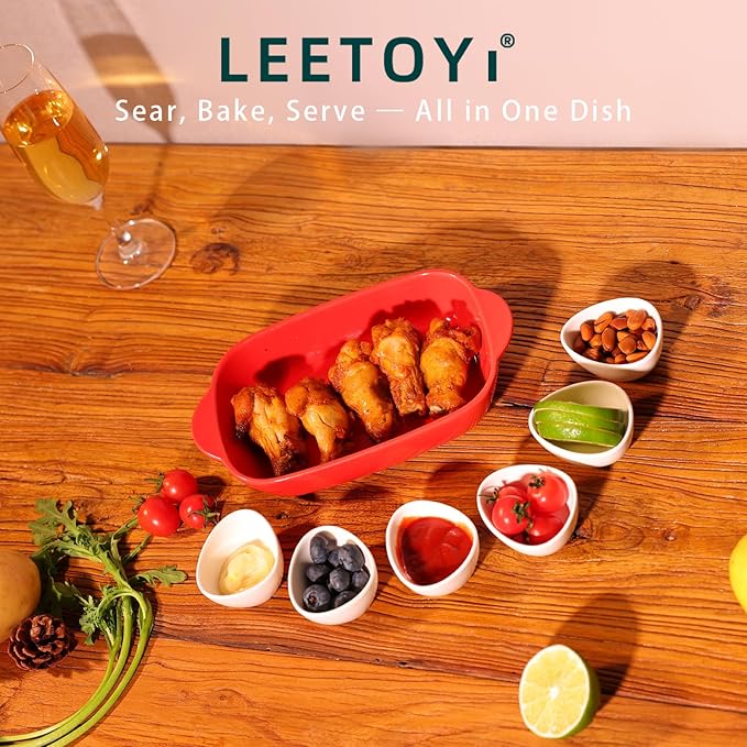 LEETOYI Ceramic Small Baking Dish, Porcelain 2-Piece Rectangular Bakeware with Double Handle, Baking Pans for Cooking and Cake Dinner 7.5"×5 (Red)