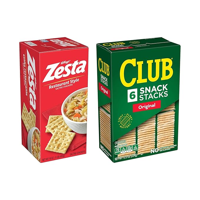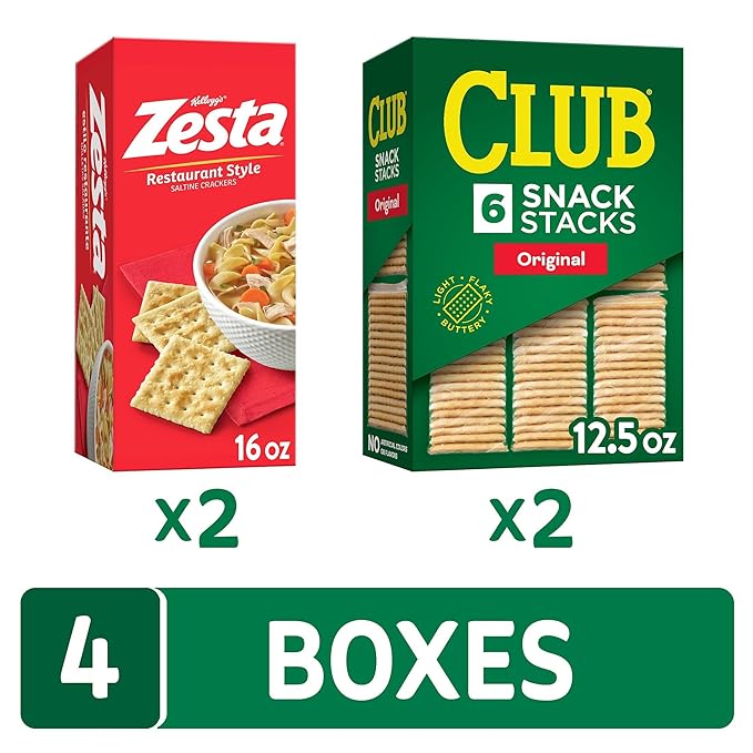 - Includes two, 16oz boxes of Kellogg’s Zesta Original and two, 12.5oz boxes of Kellogg’s Club Crackers Original