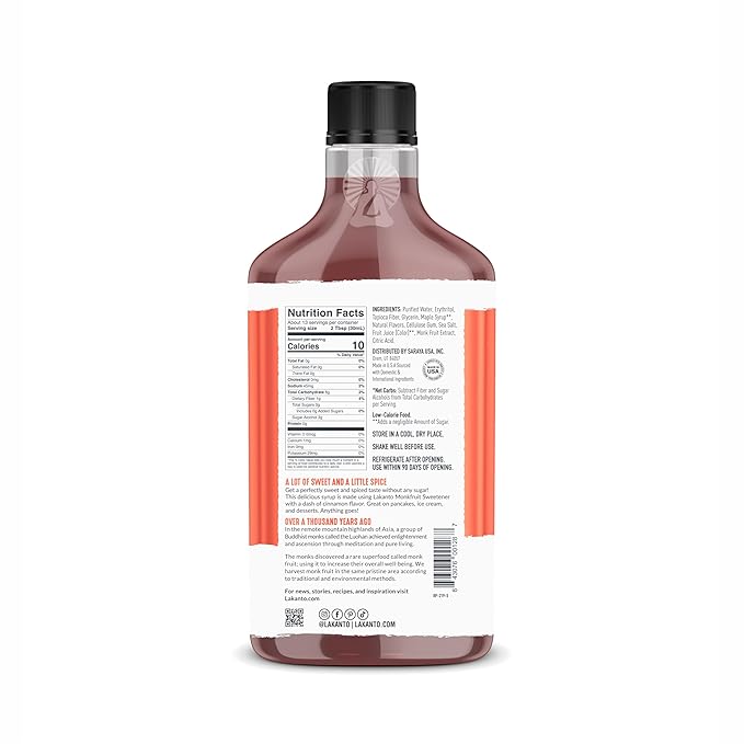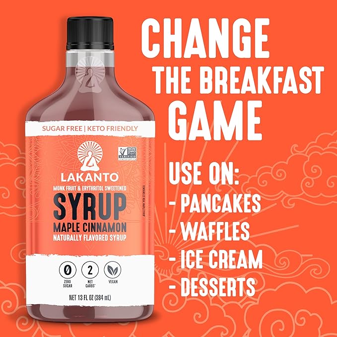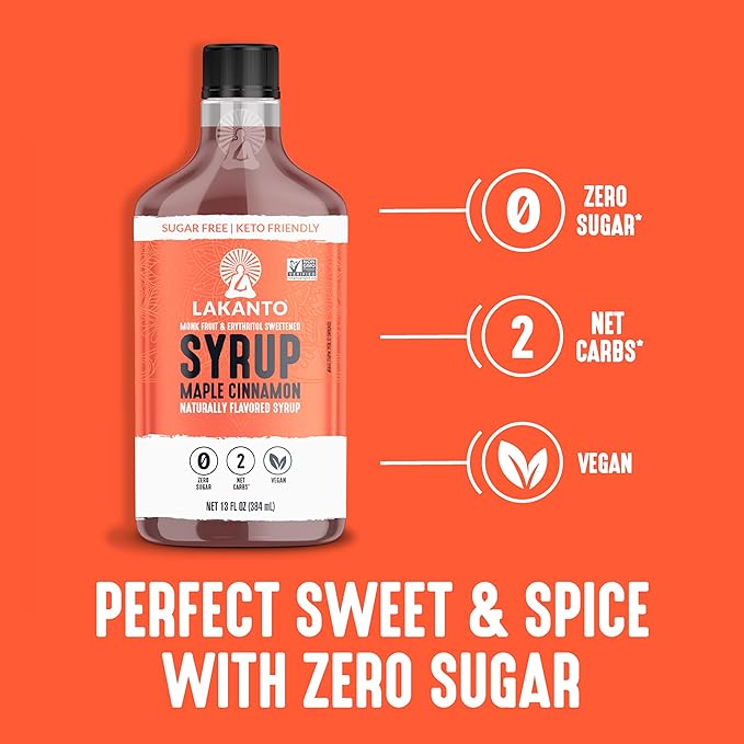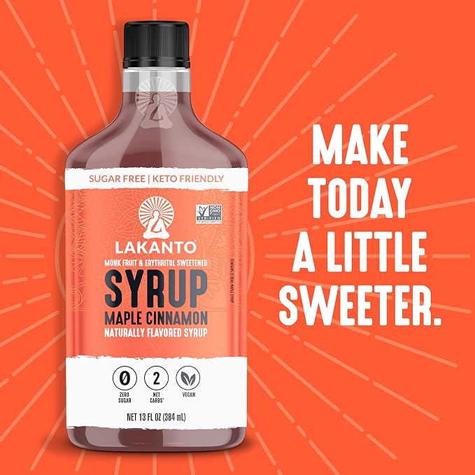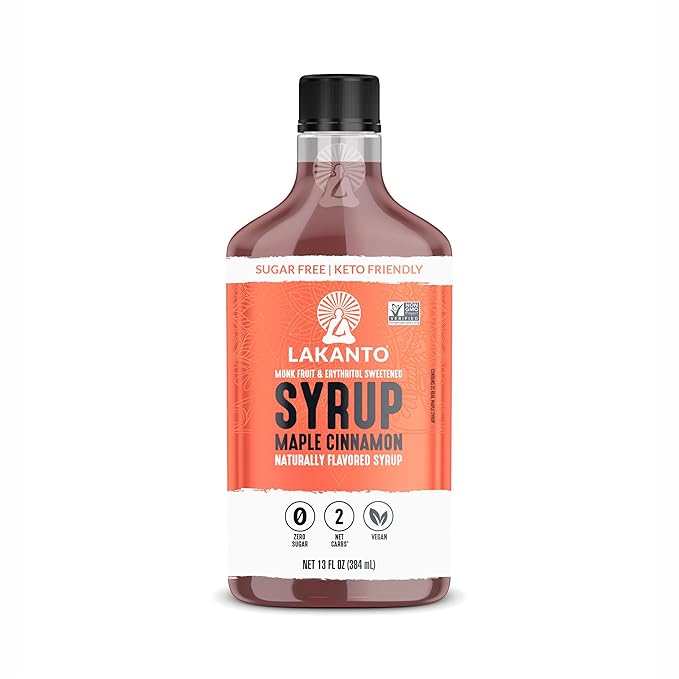 Lakanto Sugar Free Cinnamon Maple Syrup - Monk Fruit Sweetener, Keto Diet Friendly, Vegan, 2g Net Carbs, Pancakes, Waffles, Oatmeal, Coffee, Tea, Granola, Frosting, Marinade (13 Fl Oz - Pack of 1)