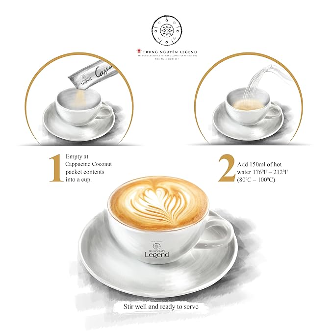 TRUNG NGUYEN LEGEND Cappuccino Coconut Instant Coffee Single Served Stick for Energy Boost (8oz - Box of 12 Sticks)