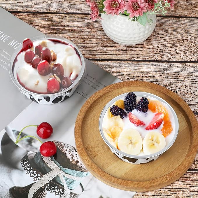 - 【Perfect Size】235ml (about 8oz) capacity, 4.3 inch top length with lid, 3.5 inch bottom length, 2 inch height with lid, perfect size to use to offer different kinds of desserts for single serving. Each cup comes with lid, and there are various colors options, provide more choices for you.