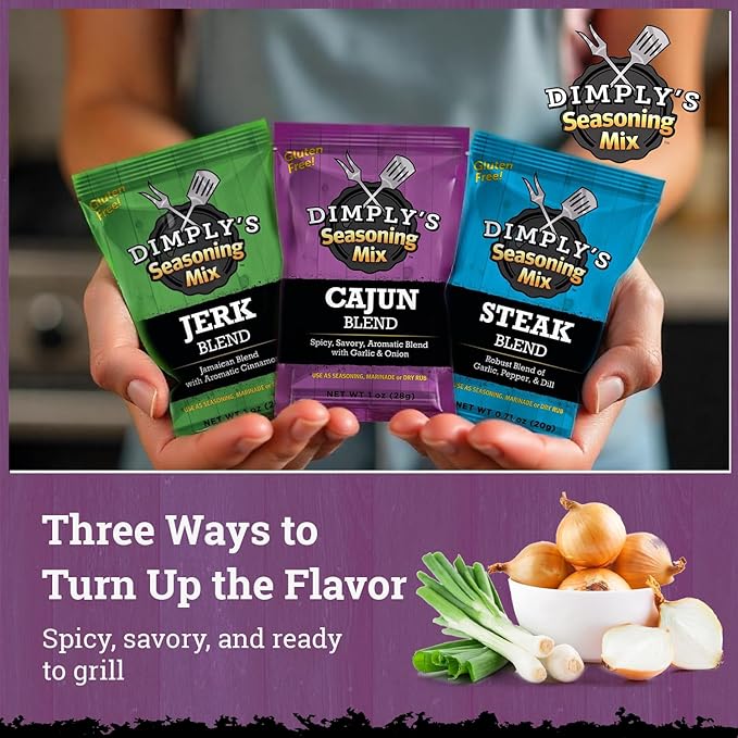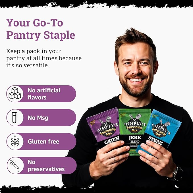 - CLEAN INGREDIENTS. Dimply's prides itself on using only natural ingredients. No MSG, no preservatives, and no artificial flavors. Each blend is gluten-free and vegan-friendly, crafted with real spices like garlic, black pepper, dill, and chili powder. You can feel confident knowing you're adding pure, wholesome flavor to your dishes.