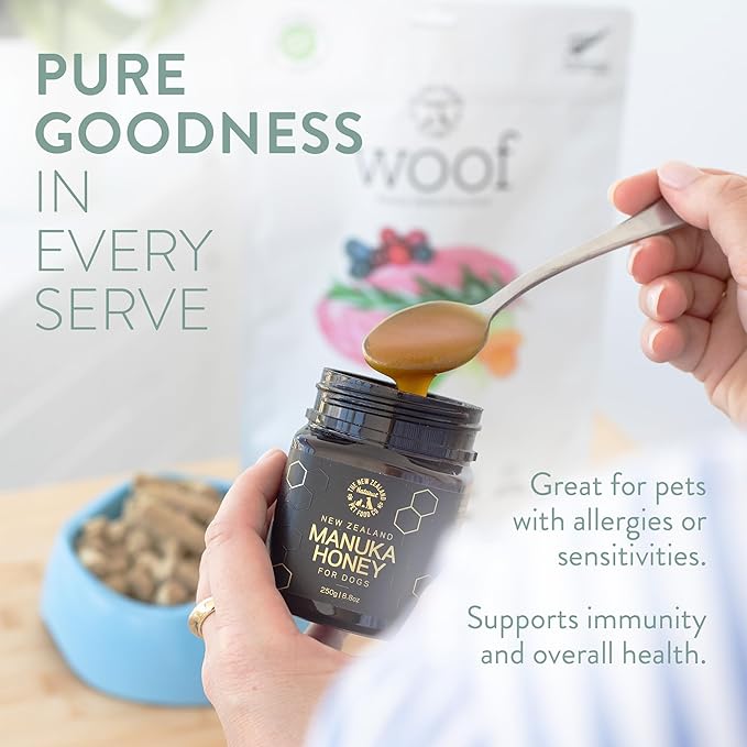 The New Zealand Natural Pet Food Co Woof Dog Treats - Manuka Honey, Dog Treats Small & Large Dog, Natural, Topper or Dog Treat, 8.8oz