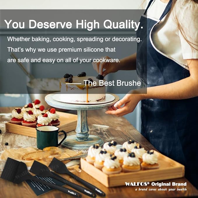 - ★ PREMIUM SILICONE, HEAT RESISTANT UP TO 450°F - WALFOS pastry brush made of high-quality food grade silicone which is BPA free. Safe to use in Oven, Microwave, Dishwasher & Freezer. Will never melt,discolor or shrink when grilling, basting or cooking (unlike some plastic, nylon or wooden brushes).